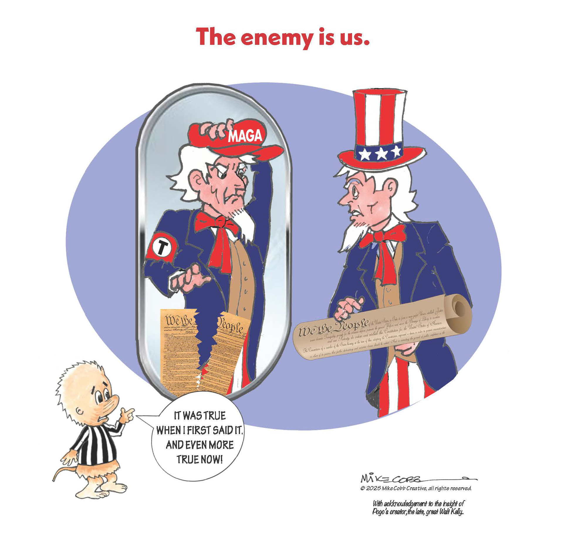 Pogo, the great philosophical cartoon character from the past, observed: “We have met the enemy and he is us!” … prophetic words that define the contemporary American political environment. With the advent of Trump 2.0, the American people are engaged in a war with themselves fighting for the freedoms that are the promise of the Constitution with MAGA Americans motivated by untruths, conspiracy theories, and a lust for power.